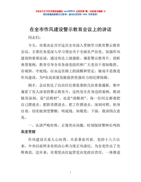 / 在全市作风建设警示教育会议上的讲话
