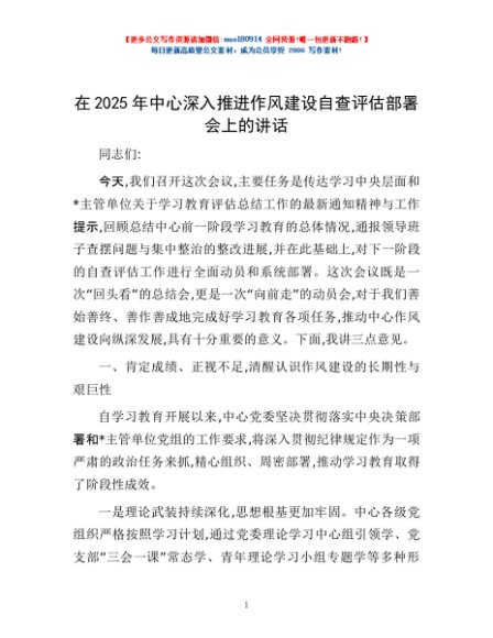 / 在2025年中心深入推进作风建设自查评估部署会上的讲话