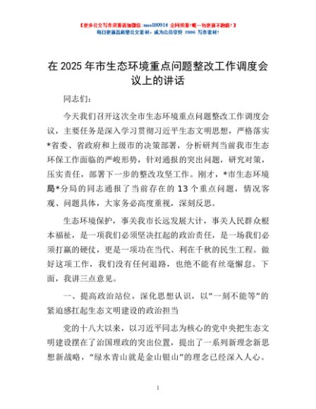 / 在2025年市生态环境重点问题整改工作调度会议上的讲话