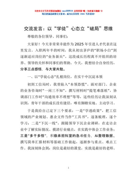 / 交流发言:以“学徒”心态立“破局”思维