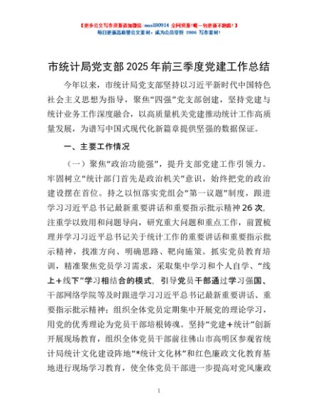 / 市统计局党支部2025年前三季度党建工作总结