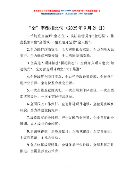 “全”字型排比句(2025年9月21日)