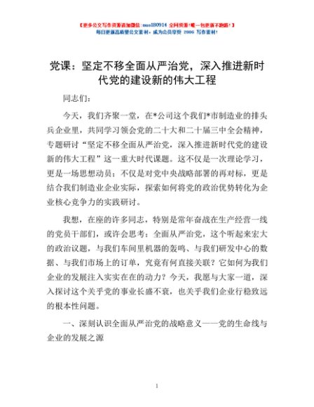 / 党课:坚定不移全面从严治党,深入推进新时代党的建设新的伟大工程