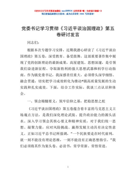 / 党委书记学习贯彻《习近平谈治国理政》第五卷研讨发言