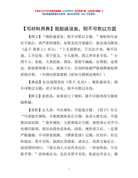 【写材料用典】规矩诚设矣,则不可欺以方圆