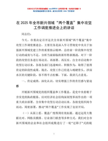 / 在2025年全市新兴领域“两个覆盖”集中攻坚工作调度推进会上的讲话