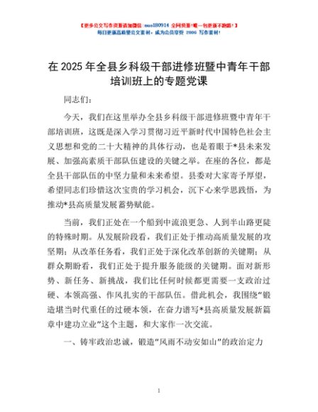 / 在2025年全县乡科级干部进修班暨中青年干部培训班上的专题党课