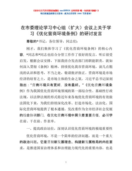 / 在市委理论学习中心组(扩大)会议上关于学习《优化营商环境条例》的研讨发言