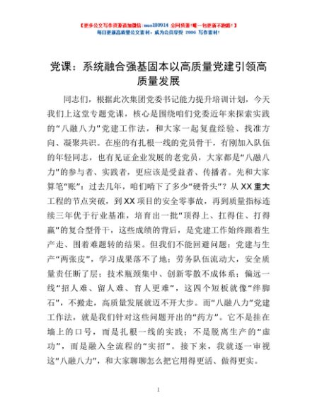 党课:系统融合 强基固本 以高质量党建引领高质量发展