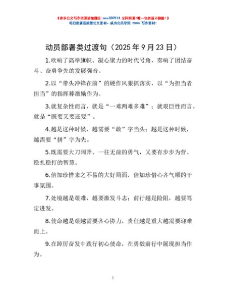 / 动员部署类过渡句(2025年9月23日)