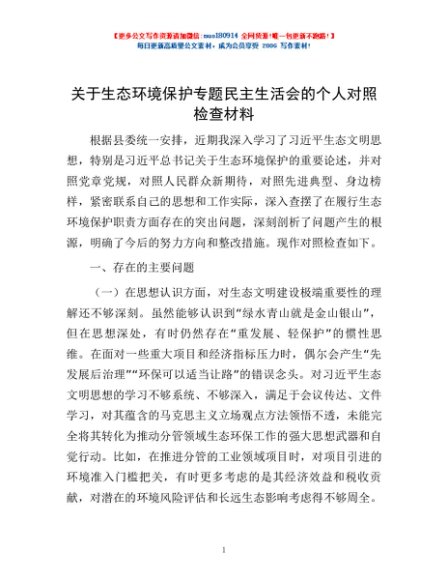 / 关于生态环境保护专题民主生活会的个人对照检查材料