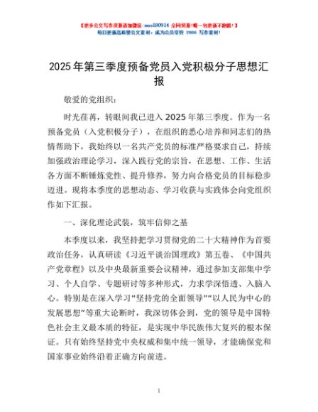 / 2025年第三季度预备党员入党积极分子思想汇报