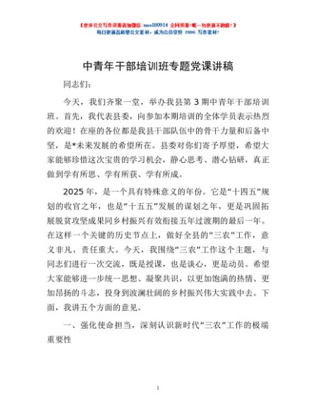 / 中青年干部培训班专题党课讲稿