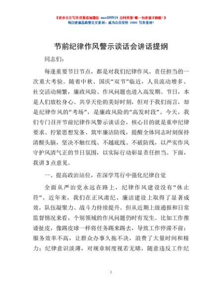 / 节前纪律作风警示谈话会讲话提纲