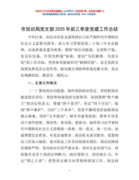 / 市信访局党支部2025年前三季度党建工作总结