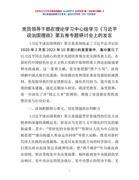 / 党员领导干部在理论学习中心组学习《习近平谈治国理政》第五卷专题研讨会上的发言