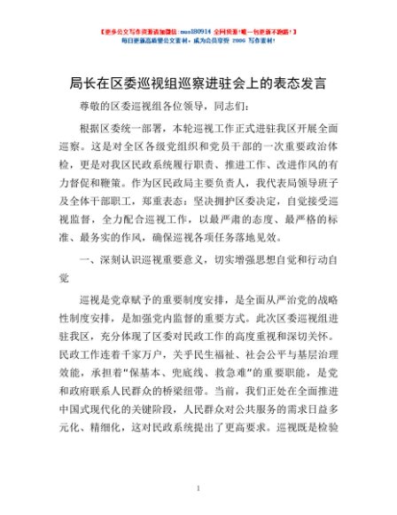 / 局长在区委巡视组巡察进驻会上的表态发言