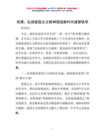 / 党课:弘扬爱国主义精神 锻造新时代城管铁军
