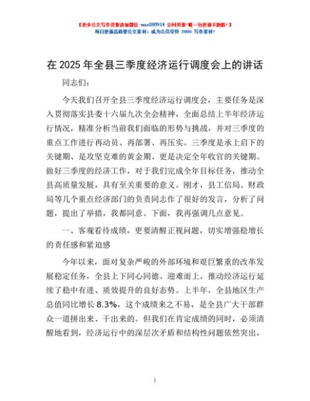 / 在2025年全县三季度经济运行调度会上的讲话