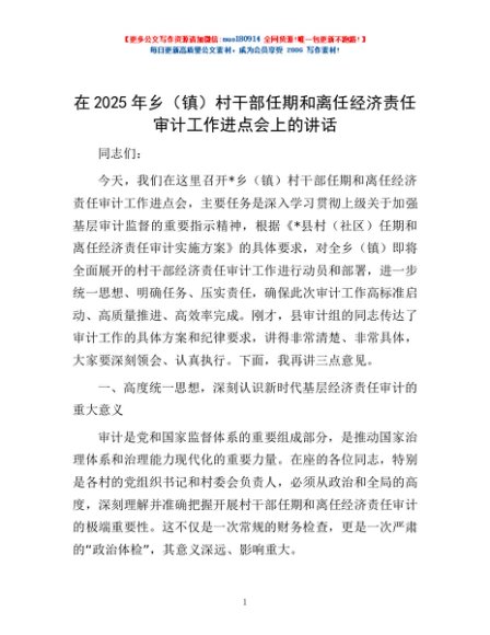 / 在2025年乡(镇)村干部任期和离任经济责任审计工作进点会上的讲话