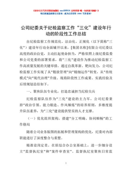 / 公司纪委关于纪检监察工作“三化”建设年行动的阶段性工作总结