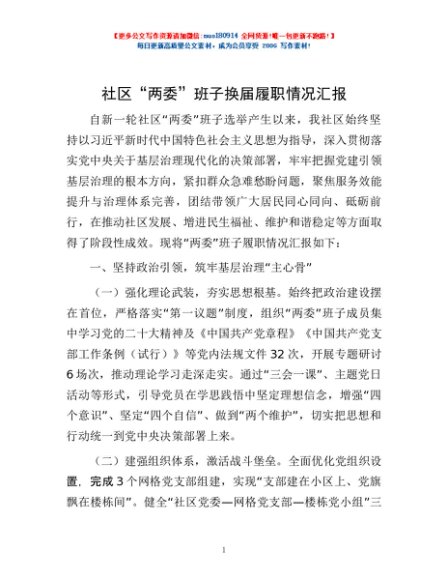 / 社区“两委”班子换届履职情况汇报