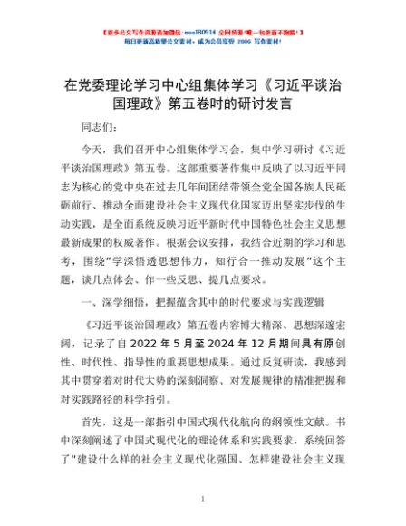 / 在党委理论学习中心组集体学习《习近平谈治国理政》第五卷时的研讨发言