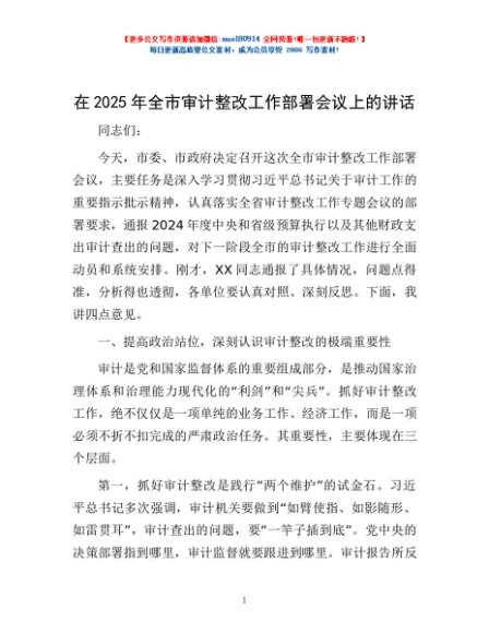 / 在2025年全市审计整改工作部署会议上的讲话