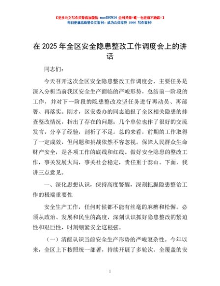 / 在2025年全区安全隐患整改工作调度会上的讲话
