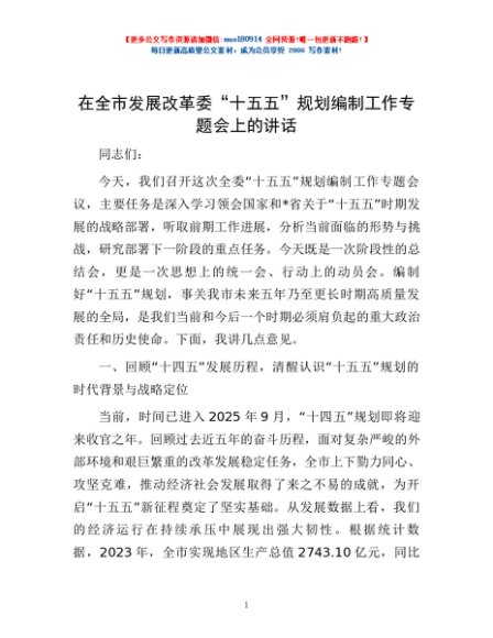 / 在全市发展改革委“十五五”规划编制工作专题会上的讲话