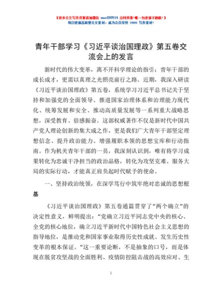 / 青年干部学习《习近平谈治国理政》第五卷交流会上的发言