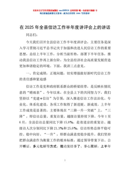 / 在2025年全县信访工作半年度讲评会上的讲话