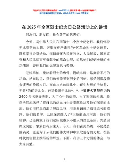 / 在2025年全区烈士纪念日公祭活动上的讲话