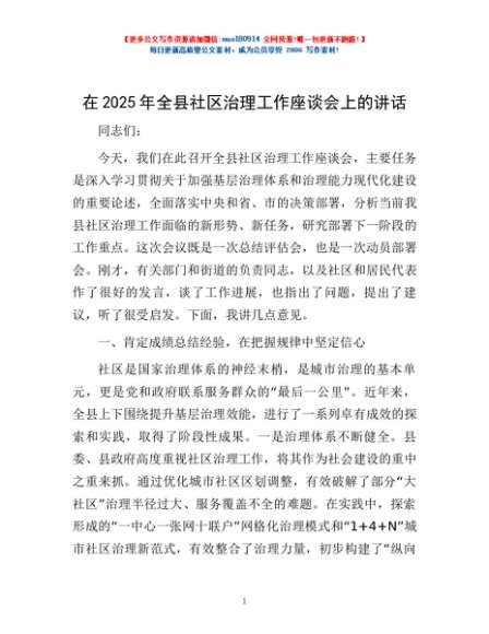 / 在2025年全县社区治理工作座谈会上的讲话