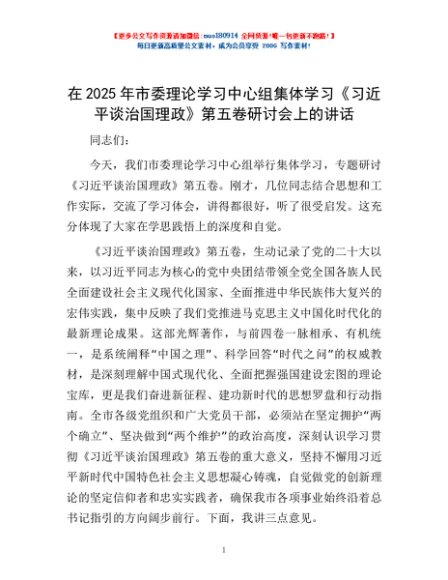 / 在2025年市委理论学习中心组集体学习《习近平谈治国理政》第五卷研讨会上的讲话