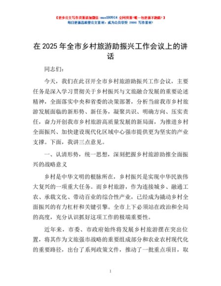 / 在2025年全市乡村旅游助振兴工作会议上的讲话
