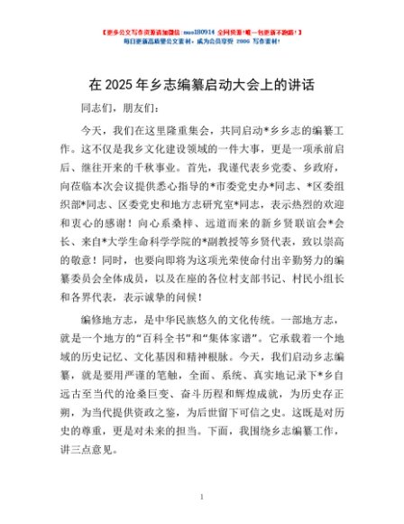 / 在2025年乡志编纂启动大会上的讲话