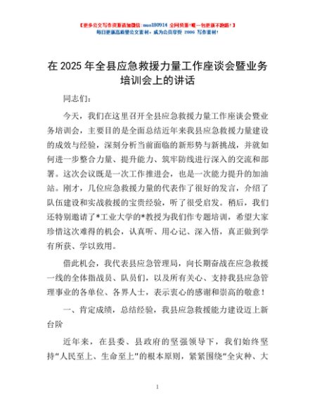 / 在2025年全县应急救援力量工作座谈会暨业务培训会上的讲话
