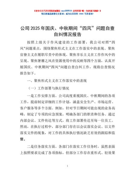 / 公司2025年国庆、中秋期间“四风”问题自查自纠情况报告