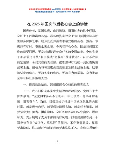 / 在2025年国庆节后收心会上的讲话