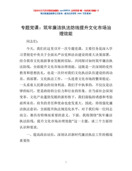 / 专题党课:筑牢廉洁执法防线 提升文化市场治理效能