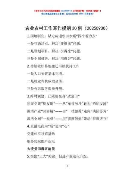 / 农业农村工作写作提纲30例(20250930)
