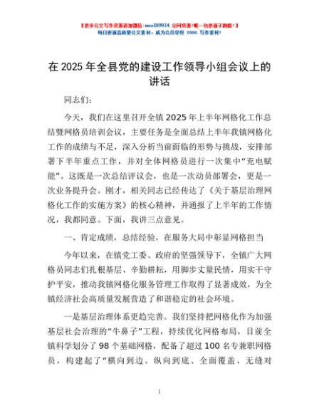 / 在2025年全县党的建设工作领导小组会议上的讲话