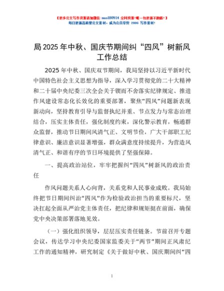/ 局2025年中秋、国庆节期间纠 “四风” 树新风工作总结