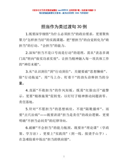 担当作为类过渡句 30例
