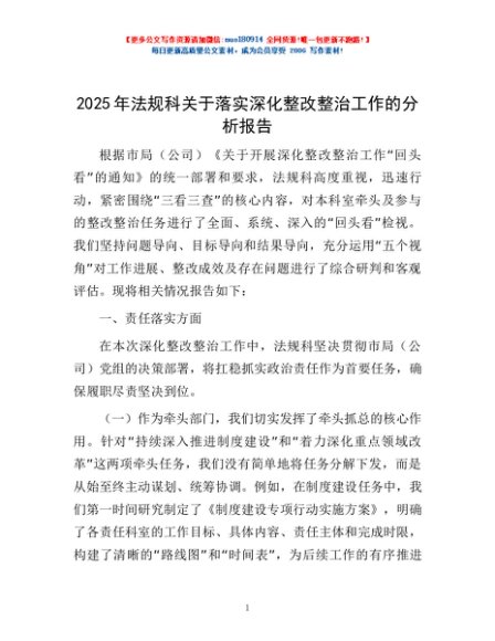 / 2025年法规科关于落实深化整改整治工作的分析报告