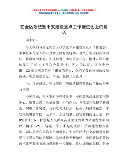 / 在全区政法暨平安建设重点工作推进会上的讲话