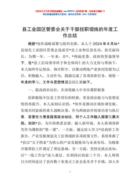 / 县工业园区管委会关于干部挂职锻炼的年度工作总结