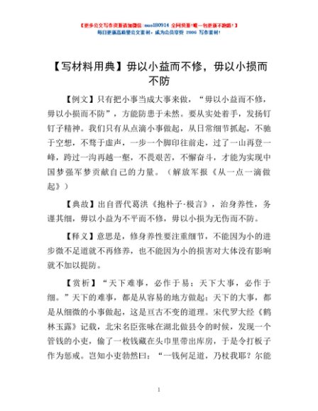 / 【写材料用典】毋以小益而不修,毋以小损而不防