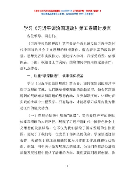 学习《习近平谈治国理政》第五卷研讨发言